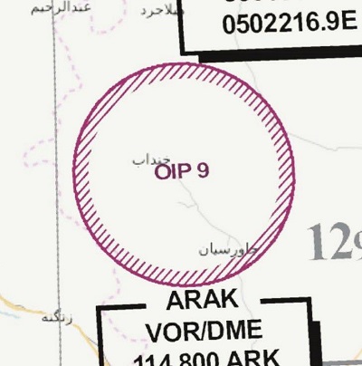 در منطقه دایروی OIP یا PAPA که به رنگ بنفش یا در برخی سایت های دیگر این رنگ را قرمز یا زرشکی عنوان کرده اند، معرف مناطقی است که پرواز در آن به کلی ممنوع Prohibited بوده و این مناطق توسط پایگاه پدافند هوایی به صورت دائم پایش، رصد و محافظت می گردد. (پدافند در آنجا مستقر است)