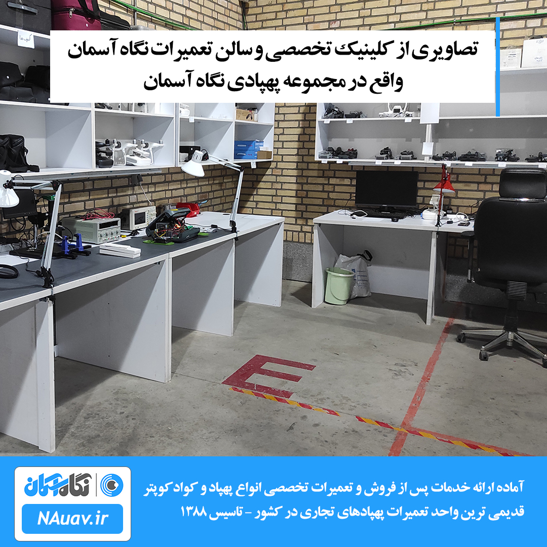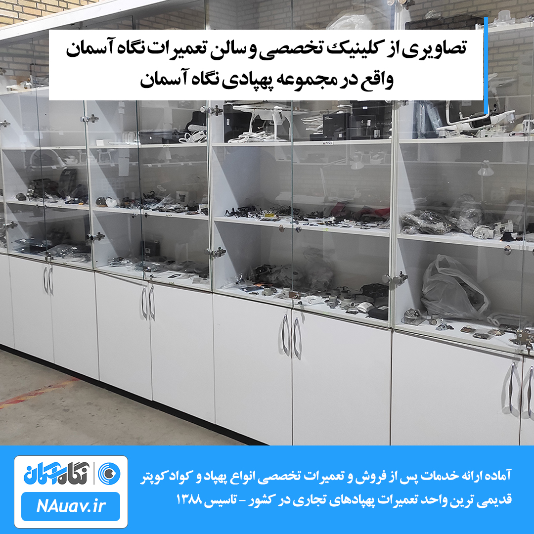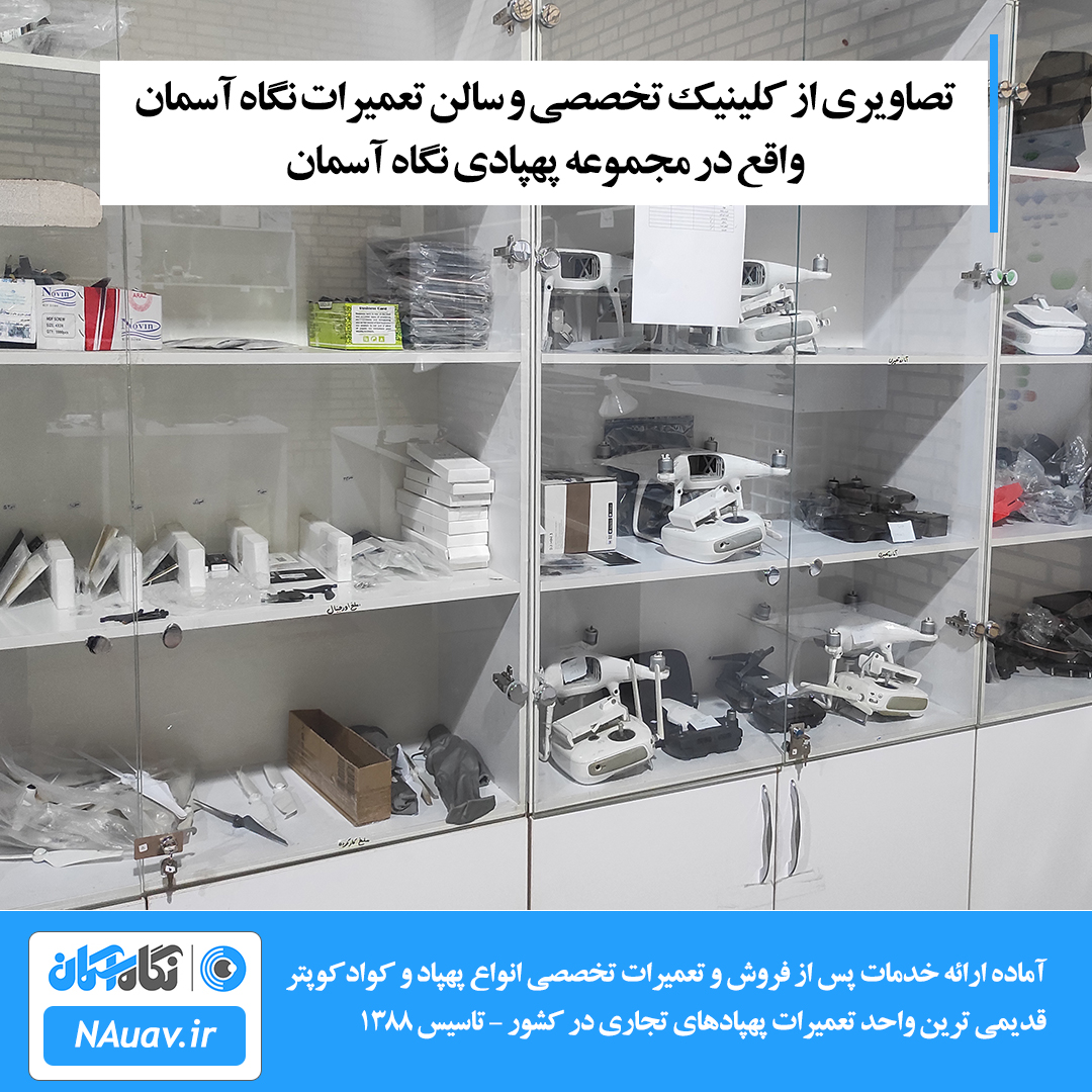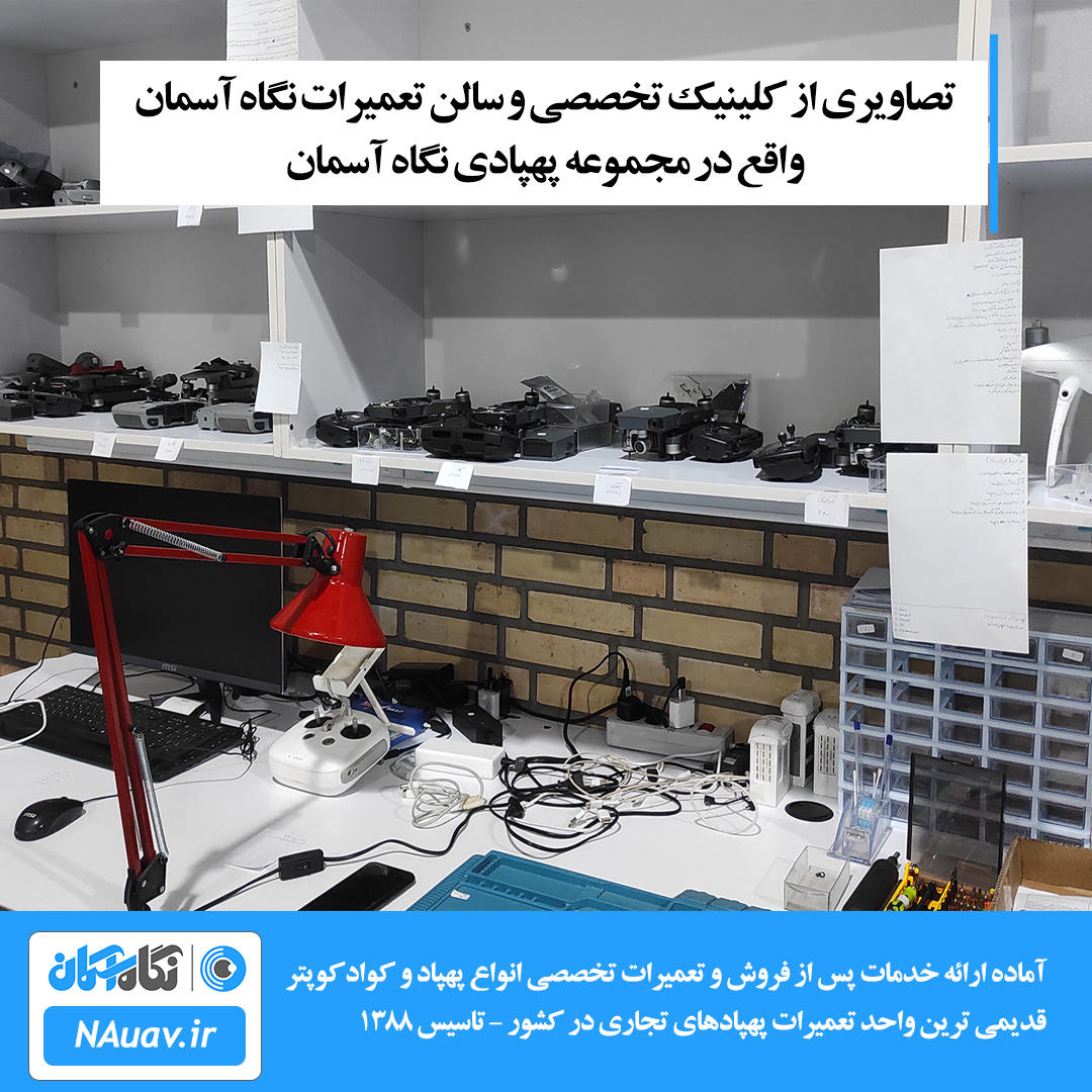 نگاه آسمان در برنامه توسعه فضا و زیر ساخت های خود، واحد تعمیرات و کلینیک تخصصی خود را توسعه داد. این واحد که از مهمترین و اصلی ترین واحدهای مجموعه پهپادی نگاه آسمان است در فضایی به متراژ 500 متر راه اندازی شده است. این کلینیک همانند وظایف قبلی خود در حوزه تعمیرات انواع پهپادهای صنعتی و تجاری در سایز کوچک تا بزرگ ارائه خدمات تعمیراتی می دهد.