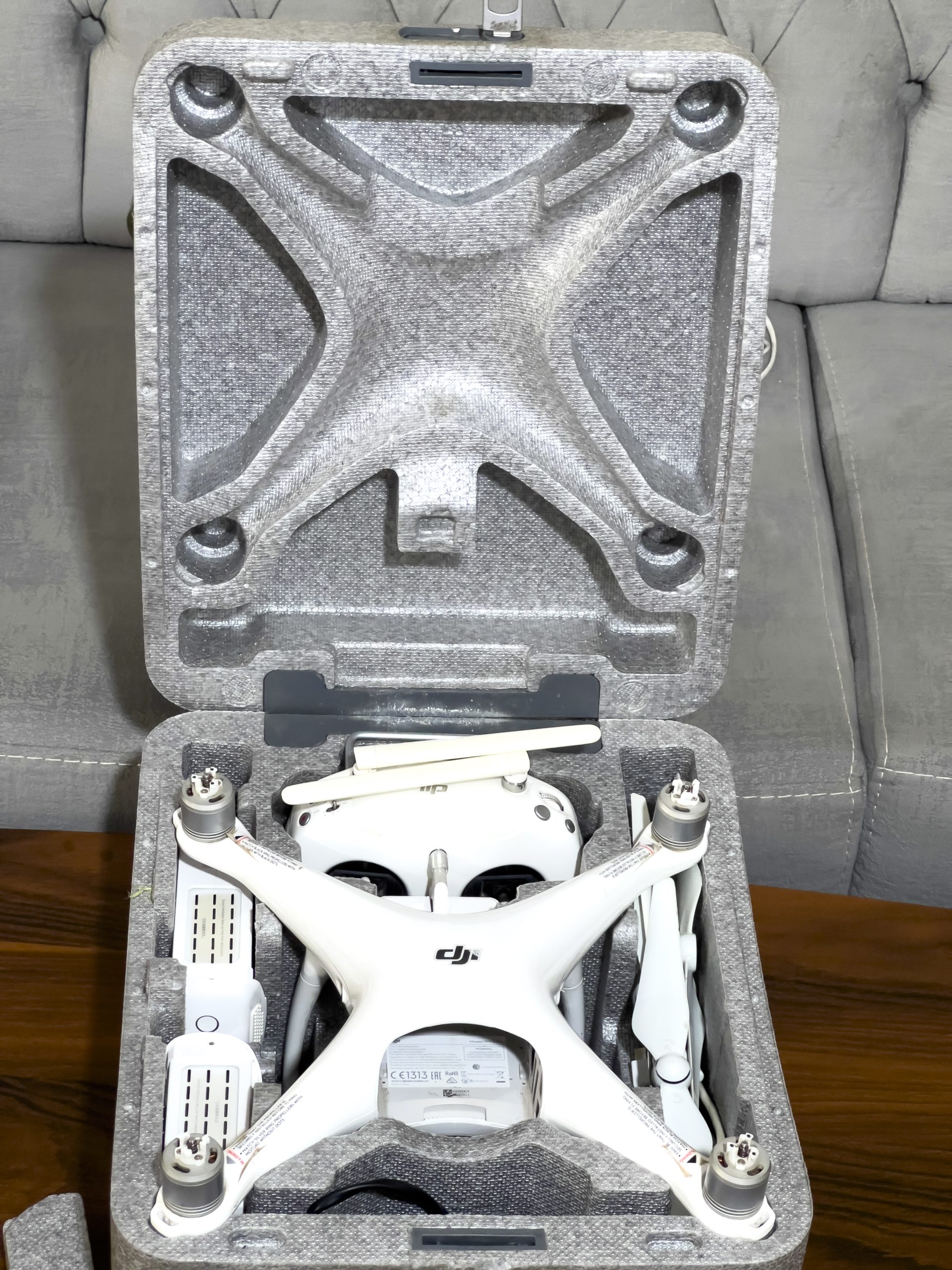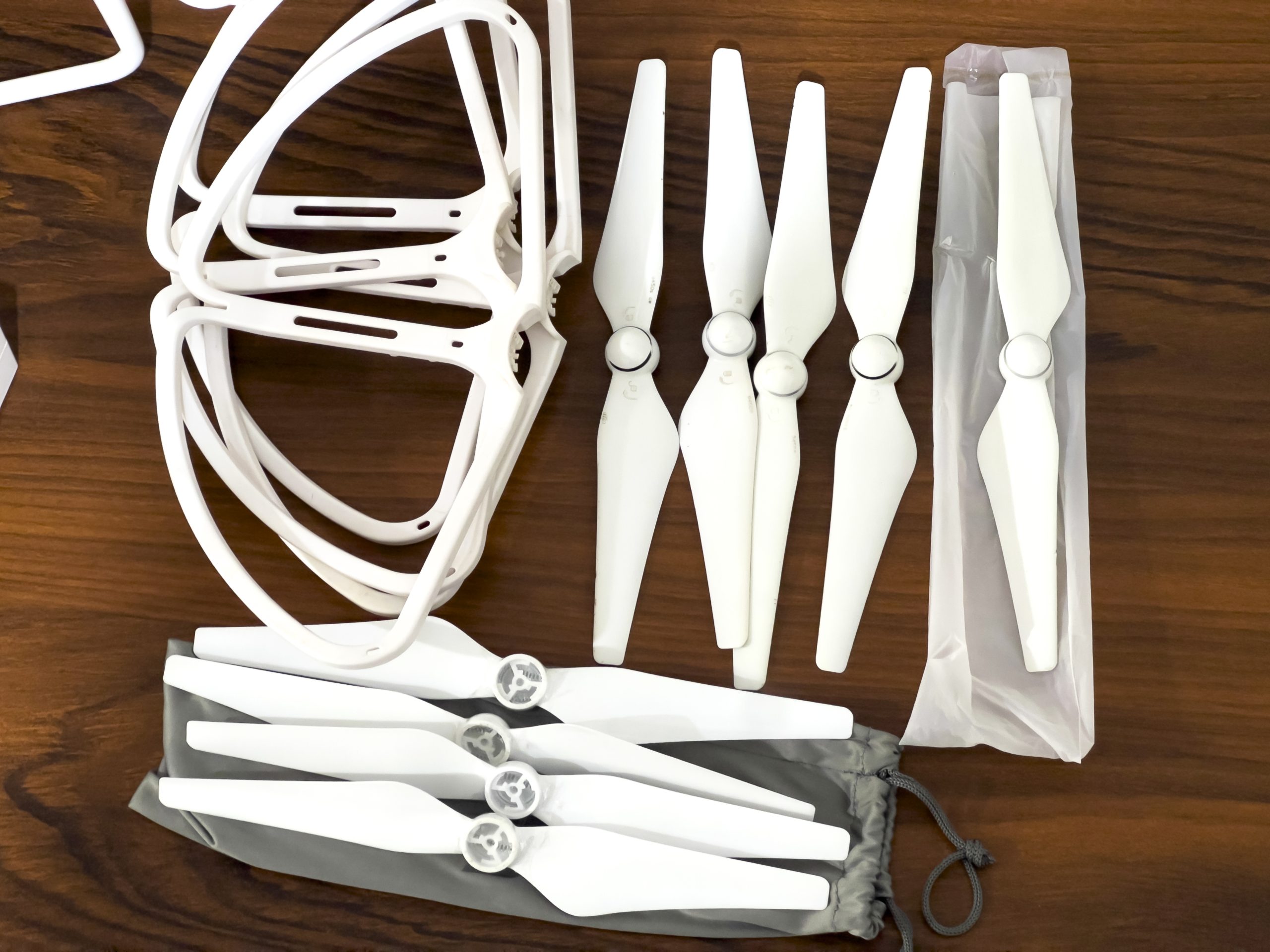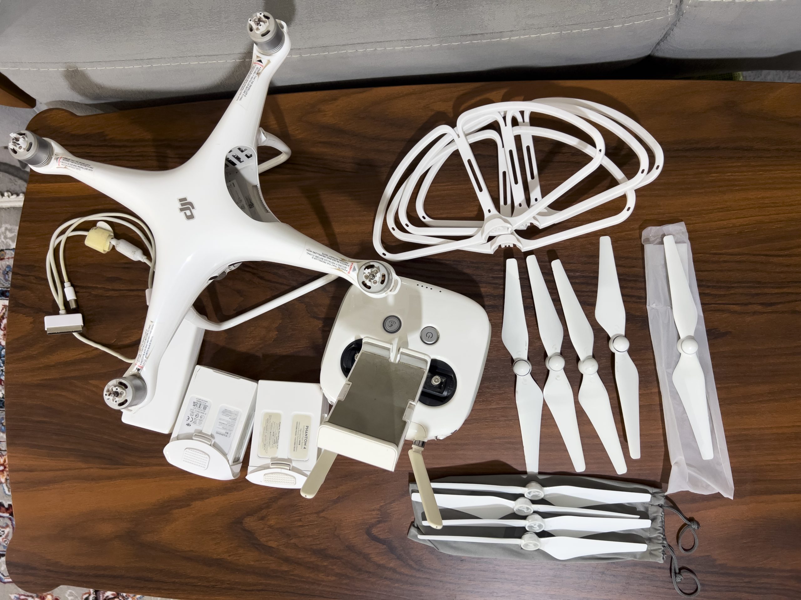 قطعات موجود در کیت: دوربین، ریموت کنترل، باتری سلامت باد نکرده، کیف یا باکس، ملخ سلامت، شارژر، کابل شارژر، کابل های جانبی، قفل یا محافظ دوربین،