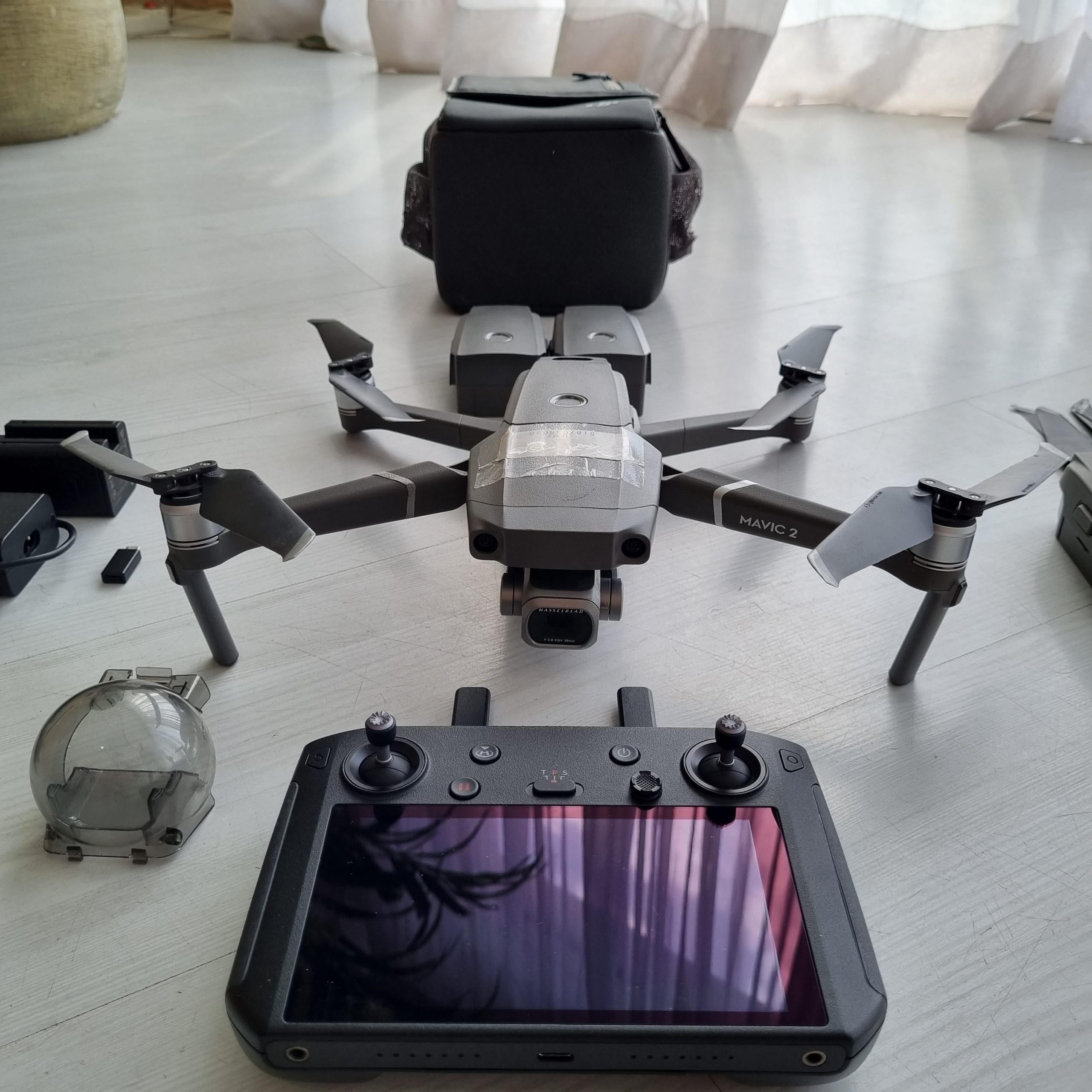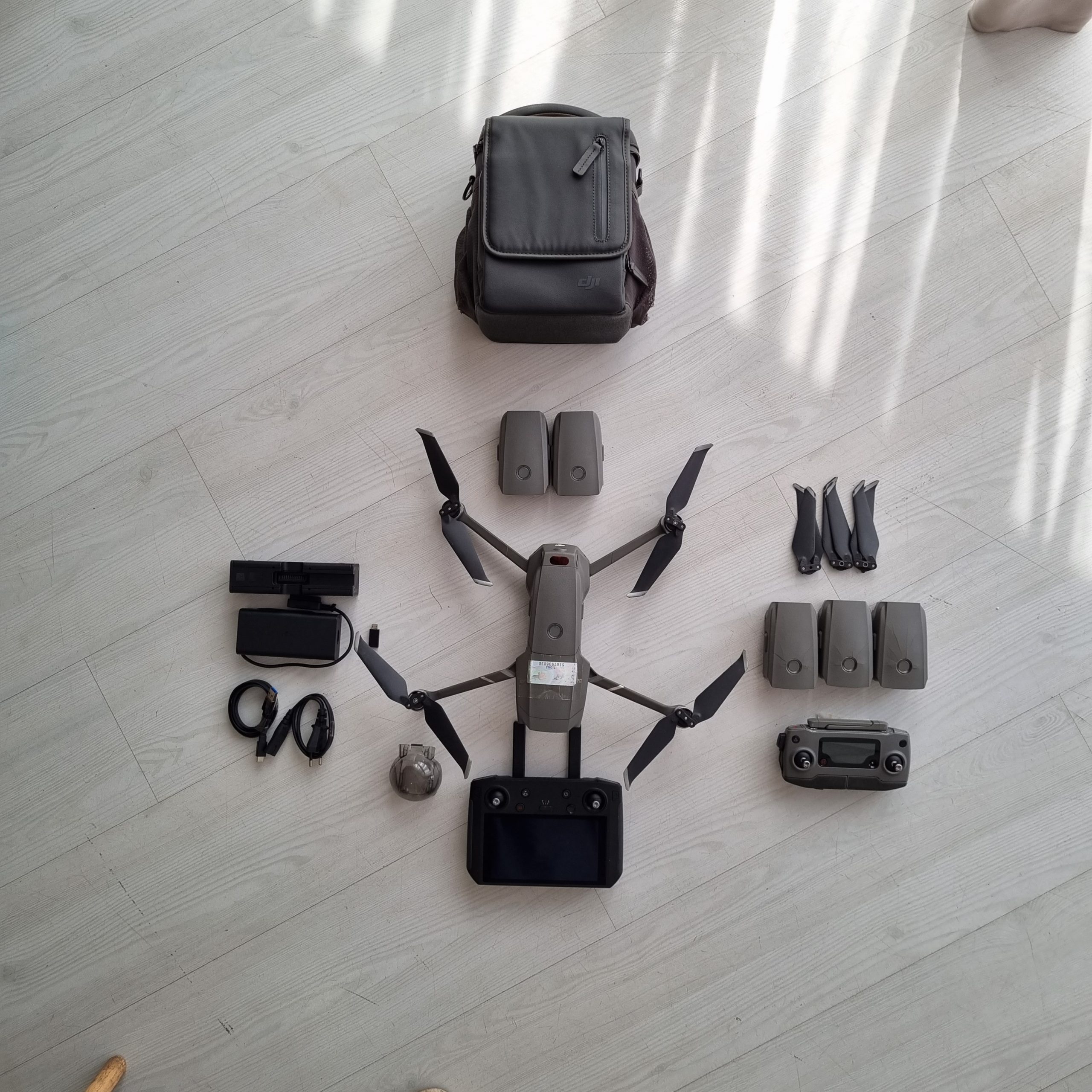 قطعات موجود در کیت: دوربین، ریموت کنترل، باتری سلامت باد نکرده، کیف یا باکس، ملخ سلامت، شارژر، کابل شارژر، هاب شارژر (شارژر چنتایی)، کابل های جانبی، قفل یا محافظ دوربین، کارتن پهپاد،